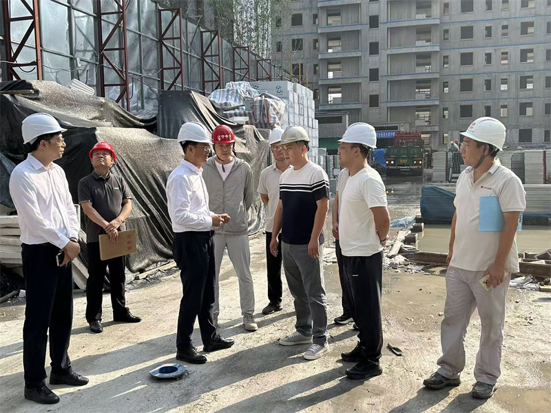 調(diào)研團(tuán)隊首先深入工地現(xiàn)場,實(shí)地察看工程建設(shè)實(shí)況。走進(jìn)施工現(xiàn)場,標(biāo)準(zhǔn)化管理場景映入眼簾:施工道路平整,材料堆放分區(qū)明確,安全警示標(biāo)識醒目規(guī)范,各類大型機(jī)械有序作業(yè)。陳兆峰副區(qū)長重點(diǎn)詢問了工地安全管理與落地執(zhí)行情況。許棕雯總經(jīng)理隨即詳細(xì)匯報:“中天·央著始終嚴(yán)格踐行中天集團(tuán)‘每建必優(yōu) 品質(zhì)為先’的核心理念,不僅實(shí)現(xiàn)了‘三級安全教育’全員覆蓋,更將‘班前安全技術(shù)交底’納入每日施工必備流程,構(gòu)建起‘全員參與、全程管控’的安全管理體系。同時,還堅持每周由項(xiàng)目領(lǐng)導(dǎo)帶班開展安全隱患排查,確保風(fēng)險早發(fā)現(xiàn)、早整改?!甭犕陞R報,陳兆峰副區(qū)長對此給予高度肯定,他強(qiáng)調(diào):“安全是工程建設(shè)不可逾越的紅線,更是保障項(xiàng)目順利推進(jìn)的生命線。中天·央著項(xiàng)目在高效施工、安全管理上的精細(xì)化舉措,體現(xiàn)了中天企業(yè)的責(zé)任與擔(dān)當(dāng),值得肯定和推廣?!?/span>