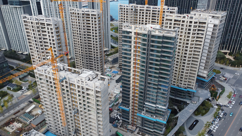 在遼陽城市公司中天·央著項目一期施工現(xiàn)場,主體結構已經全部封頂,樣板間已裝修完成并開放,外墻裝飾部分,一半樓棟已基本完成,其余樓棟的外墻保溫、鋁板龍骨施工和涂料施工總體完成50%左右。施工現(xiàn)場防火門、進戶門、窗已陸續(xù)進場,窗玻璃整體已安裝完成50%,地熱及地面施工完成50%,樓梯間瓷磚整體完成30%。電梯安裝單位已進場安裝,施工進度25%。為實現(xiàn)年末完美收官,本月工程部組織各施工單位、監(jiān)理單位、建設單位每周召開例會,安排現(xiàn)場施工進度及需要解決的問題,制定年底施工進度目標,重點關注施工質量,以高要求、高標準的工作作風完美詮釋遼陽首家第四代住宅的品質,保證達到公司預期的結果。